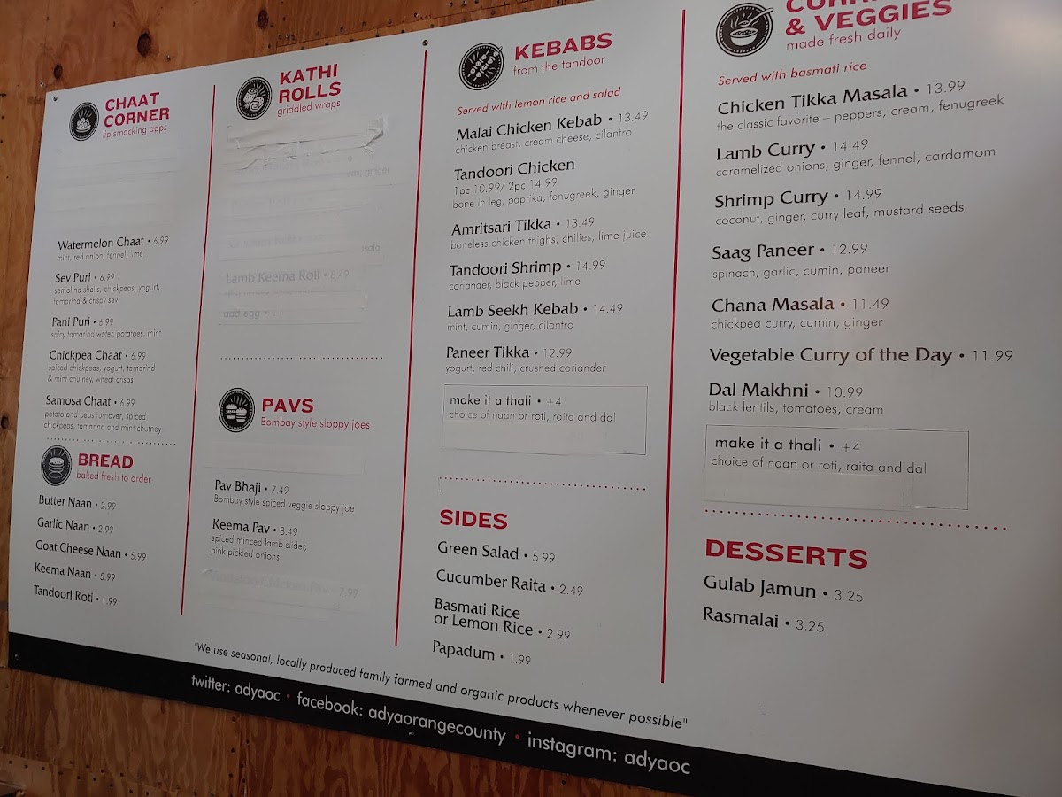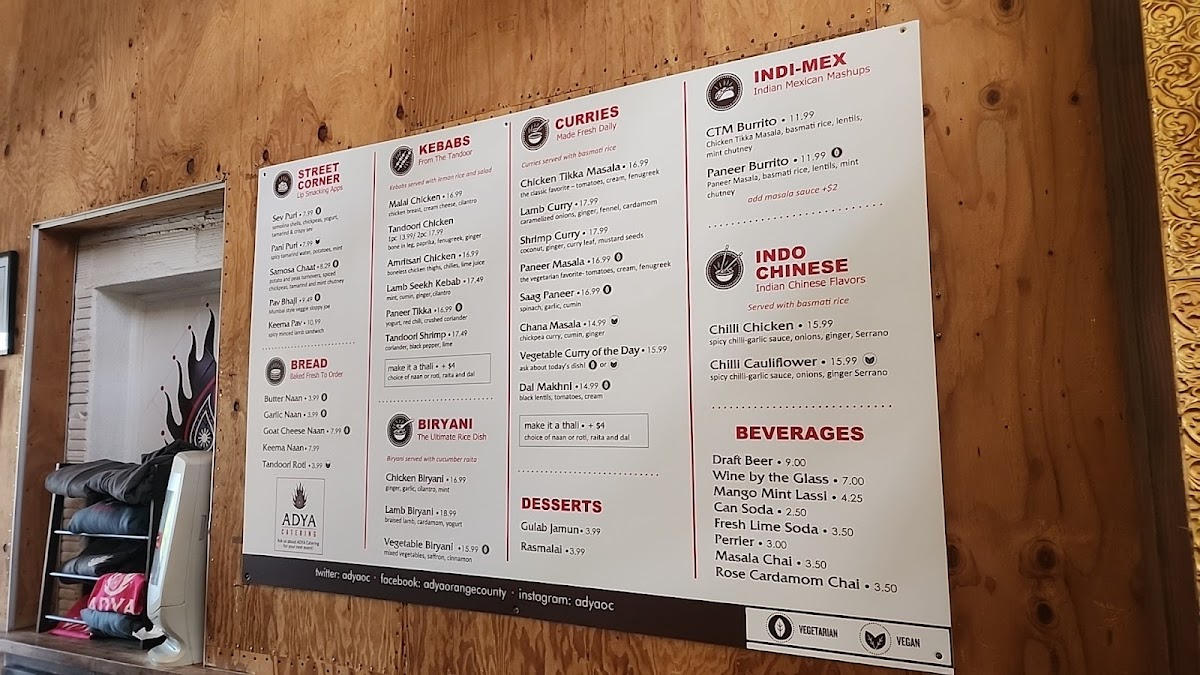 Welcome to ADYA - Anaheim, a vibrant culinary destination nestled in the Anaheim Packing House. This unique eatery fuses Indian and Mexican cuisines, offering a tantalizing menu that highlights the richness of both cultures. Each dish is prepared to order, ensuring freshness and flavor.